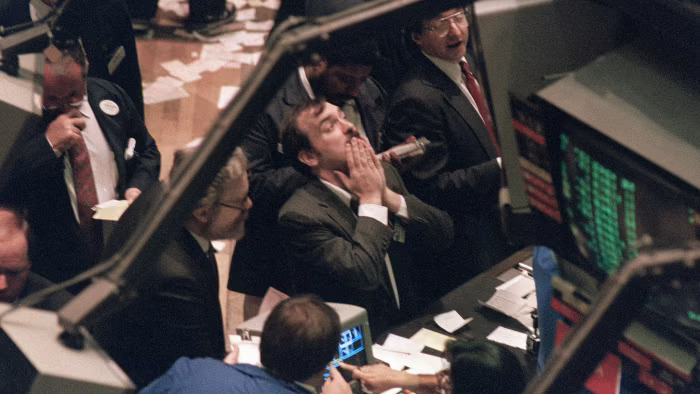 A trader on the New York Stock Exchange on October 19 1987, which was later branded ” Black Monday ” .